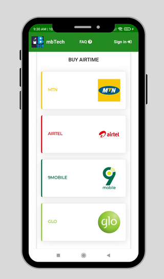 Buy Airtime of all networks, MTN, GLO, 9mobile, Airtel.