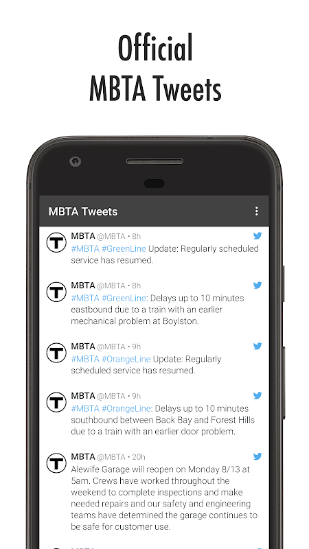 - twitter feed with official @MBTA, @MBTA_CR and @MBTATransitPD tweets