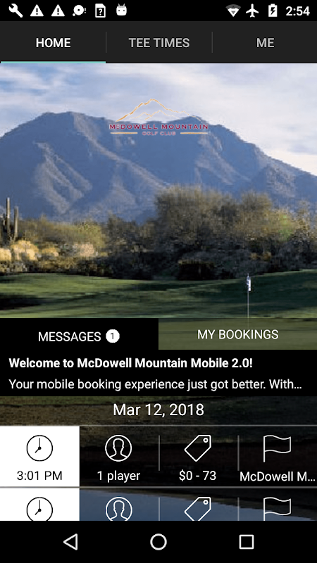The McDowell Mountain app includes custom tee time bookings with easy tap navigation and booking of tee times.
