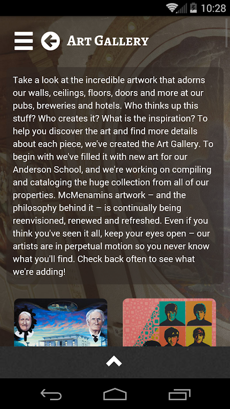 The official McMenamins for Android app provides a quick reference to our Northwest destinations, music & events, movies, and our popular McMenamins Passport—for every Cosmic Tripster.
