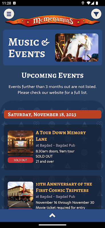 The official McMenamins for Android app provides a quick reference to our Northwest destinations, music & events, movies, and our popular McMenamins Passport—for every Cosmic Tripster.