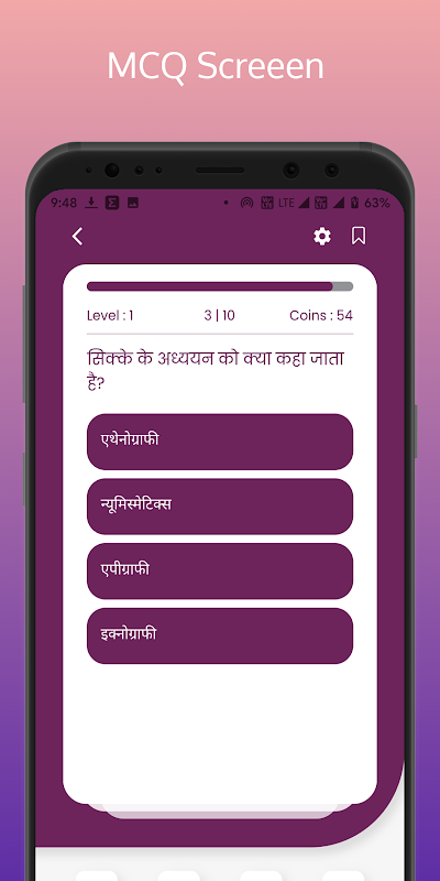 Various types of MCQ questions are available in this app to improve Competitive exam preparation. Objective-type questions are presented in the MCQ Hub app in the following way