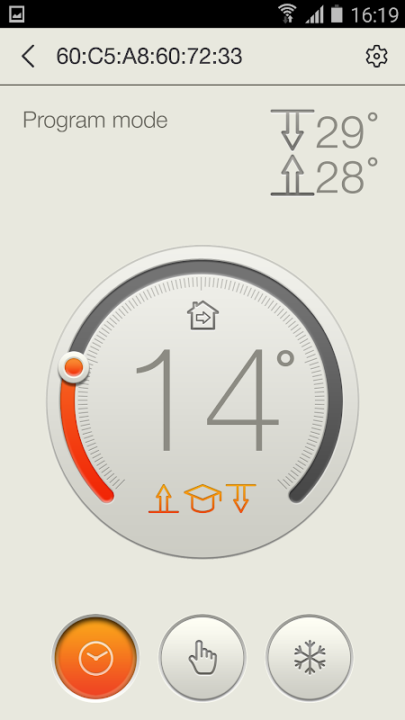 The MCS 350 application enables to control the operation of electric and water warm floors, electric radiators and portable heaters by your smartphone anywhere there is mobile Internet access. The warm floors and electric heaters shall be connected to a special thermostat MCS 350. The thermostat and a smartphone indoors may be commutated directly via Wi-Fi without additional devices. If you need to control several thermostats or the remote control access, the connection is performed through a home Wi-Fi router with Internet access.