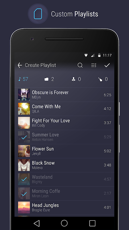 • Once you select a directory for music library, internal folders will be assembled in playlists for your convenience. You may easily create custom playlists as well.