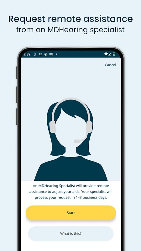 • Request remote assistance and an MDHearing specialist will remotely fine-tune your settings through the app