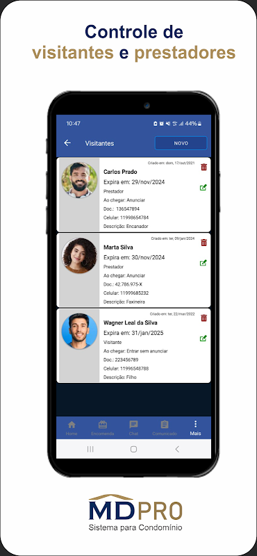 MD Pro is an app for condominium residents to control entry and exit from the garage, as well as manage packages, visitors, notices, incidents, chat with the concierge, condominium documents, internal classifieds, and much more!