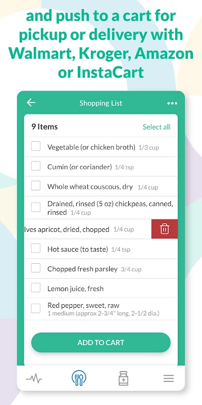 • “Push-to-cart” feature – Easily send recipe ingredients for delivery or pickup at Walmart, Kroger, Amazon or Instacart.