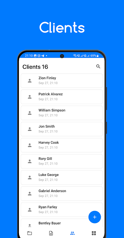 Manage a client database by specifying their first and last names, and phone numbers. This makes contact management convenient and allows you to quickly find the necessary information.
