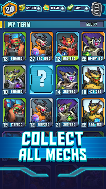 Huge collection of mechs with unique skills to build different battle formations.