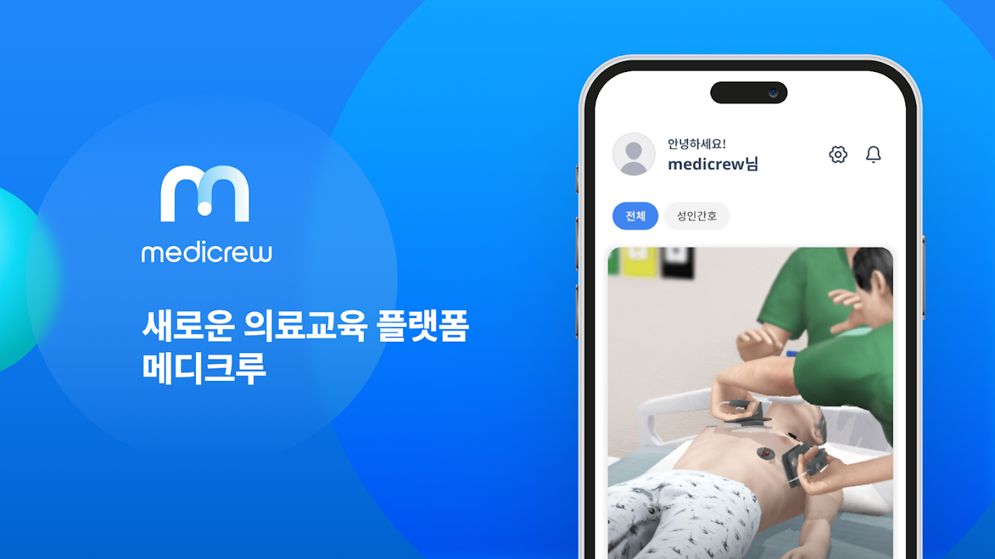 Medicrew (formerly Nurse Base, formerly Medibase) is a virtual medical education service that enables training at the practice level of (pre-) medical staff in mobile and VR environments. Based on medical data, 6 virtual cases were implemented with 33 medical advisors to a level similar to reality, and clinical skills, nervous system assessment, disaster severity classification simulation, ACLS, and three types of respiratory infectious disease response were applied to practical and educational sites. has been developed.