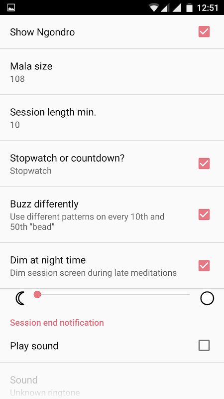 Meditation tracker comes with predefined preliminary practices group(Ngondro) and you can of course add your own practices and plan a schedule based on date you aim to complete practice or number of daily repetitions. Each session is stored for possible later use.