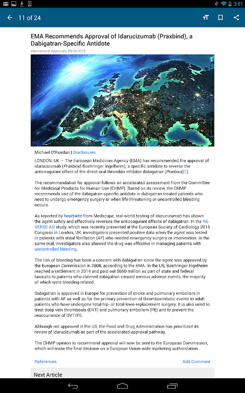 • Stay current with breaking drug and device news from the FDA, new practice guidelines, updates on clinical trials and insights from more than 150 conferences