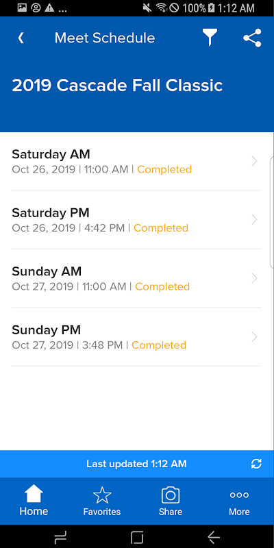 • Let fans send your meet viral as they share their favorite swimmers’ results instantly via Facebook, Twitter, email or text