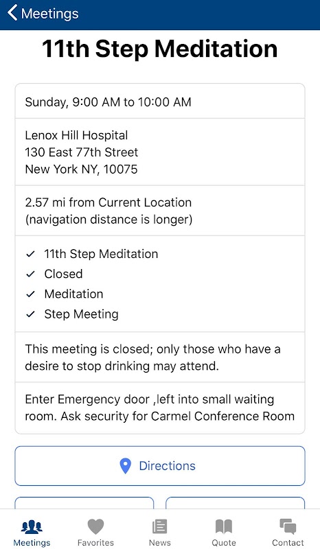 • If you choose not to share your location, you can still find meetings by entering a location in the search bar, in which case you will receive a list of meetings near the location you entered.