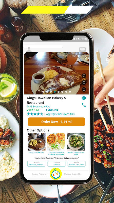 MeetKai is an artificial intelligence-powered virtual assistant. MeetKai can search and discover, movies, TV shows, recipes, and restaurants. MeetKai has the best way to search using your natural voice. Instead of talking like a machine by saying "Find Chinese restaurants", just tap on Kai and ask "Recommend a nearby Chinese restaurant". You'll be amazed at the lightning-fast response.