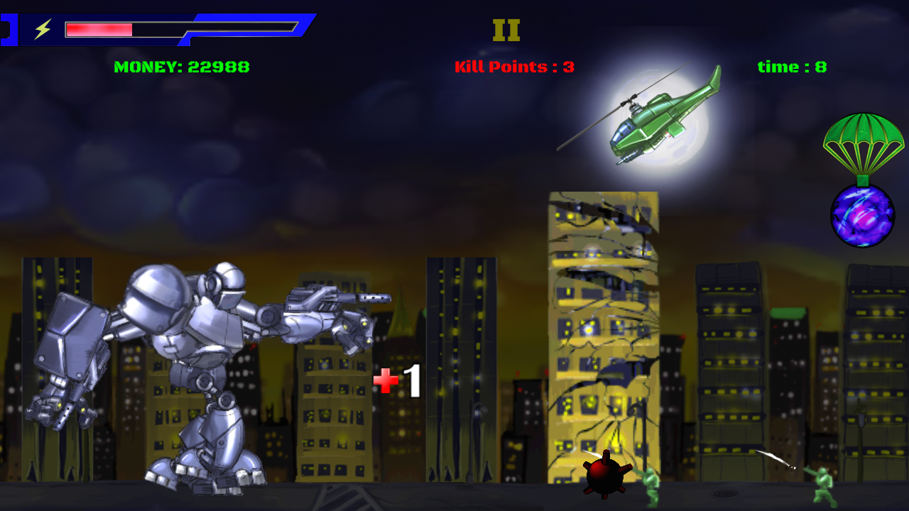 Mega Bots are everywhere. Alien technology has invaded earth. Huge Robots are sent from Distant planets to kill everyone. You are the pilot of one of these heavy terror machine. Kill Anything and Everything in your path. Show no mercy. Level the ground with fury and power of your Mega Bot and make place for the alien race to thrive on Earth. Everyone tries to be hero,lets try something new with the killer Mega Bots.