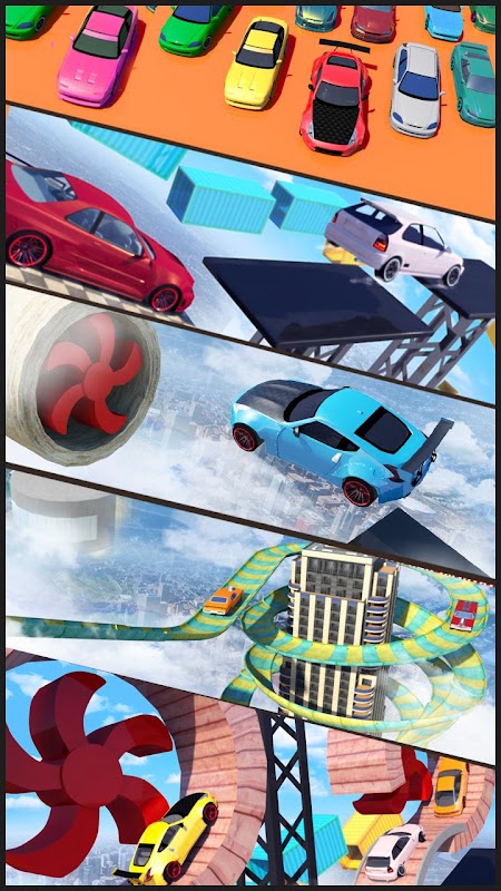 Drive and soar to go past the top speeds in the least amount of time and score the highest in charts. You must fasten up your seat belt. It's risky to drive at these high speed on the ramp, but adequate control of the speed should be possible to jump off the track and land your vehicles. Drive your car and avoid all collision with the obstacles. The flying cars will achieve a grand high jump! These are the crazy auto vehicle. The cars can be driven almost vertical mega ramp to the environments.