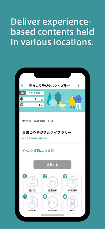 In rally-type content where you collect points or stamps, you can obtain stamps and points without the need for paper forms, allowing you to participate safely and completely contactless.