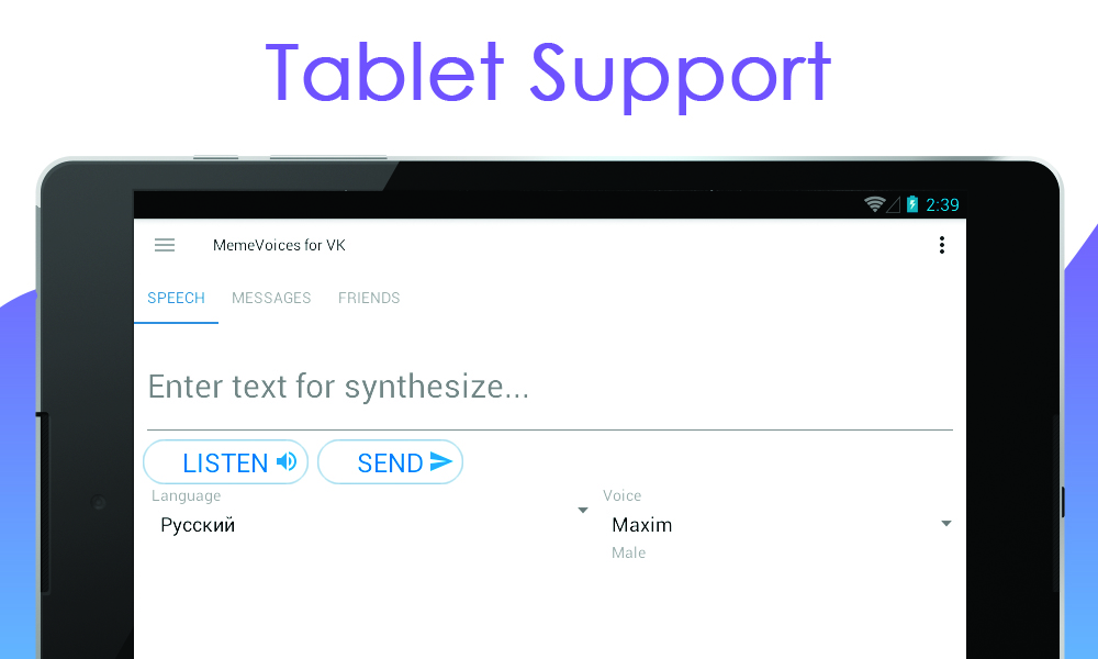 With this application you can voice the written text and send it to friends like an audio message, voiced in funny voices, or send audio-phrases of popular memes with integration to messengers.
