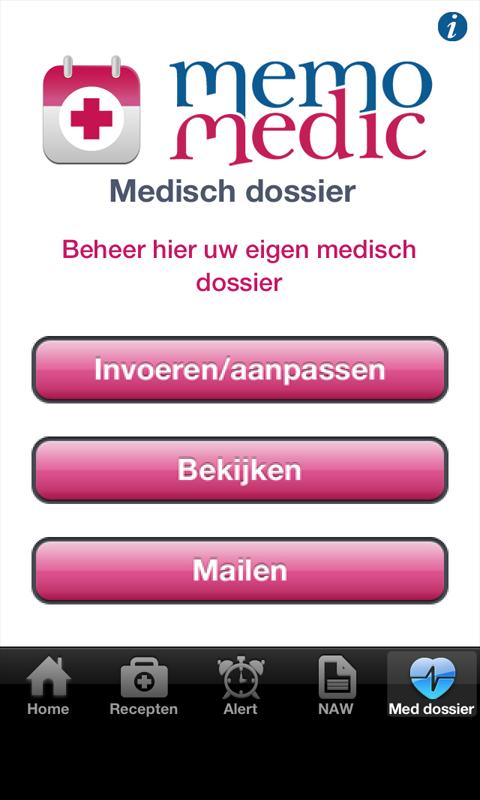 • MemoMedic fungeert als uw Persoonlijk Medisch Dossier