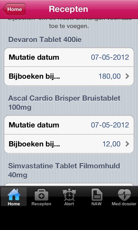 Daarnaast is het een fijne gedachte dat u uw belangrijke medische gegevens altijd bij de hand hebt. Zelfs in het buitenland. Zit u onverhoopt ineens zonder medicijnen, bijvoorbeeld op reis, dan weet u precies wat u slikt en wat de status is van uw therapie. Met uw Persoonlijk Medisch Dossier heeft u bovendien altijd, waar u ook bent, direct alle essentiële medische informatie voorhanden, voor het geval u plotseling een andere arts of apotheek moet raadplegen.