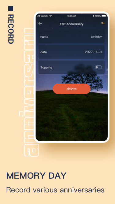 Memorialday app is a schedule management APP that can record important dates such as love anniversaries and birthdays. Users can add and manage various types of days such as birthday, anniversary, life, work or custom in the memorialday app, and set a customized reminder time, so that you will not miss the important day.