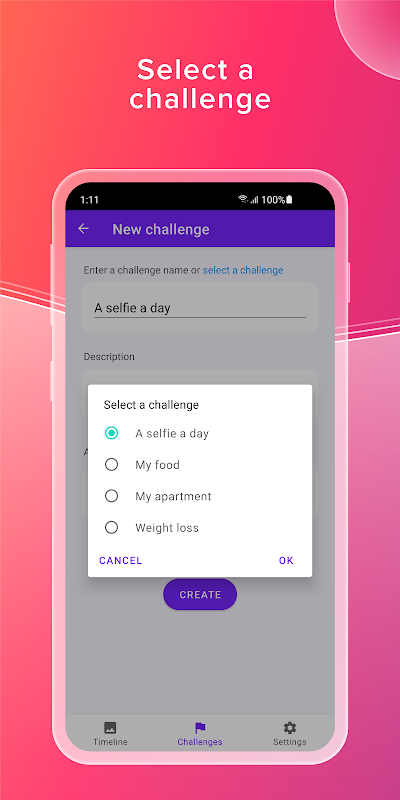 "Memories" comes with a selection of pre-made challenges, just choose one and you will be notified when it’s time to take a photo.