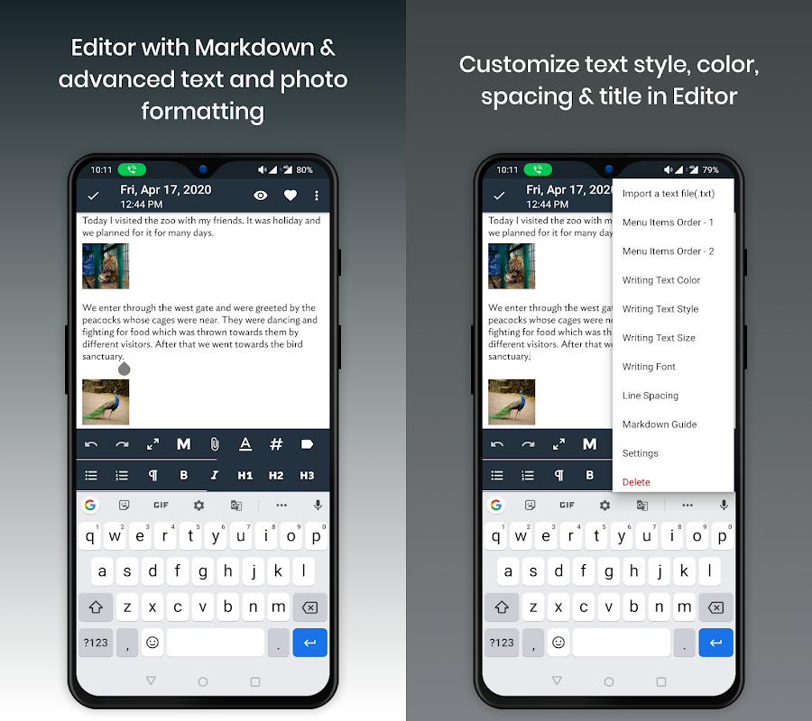 - Unlimited & Inline Photos: Add unlimited photos directly within your entries.