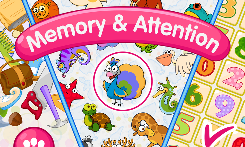 This educational bundle includes 4 mini-games for the development of visual memory and 3 mini-games for the training of attention and concentration. The games are great for kids ages 4-7 years old, but watch out: parents can get addicted to them just as easily.