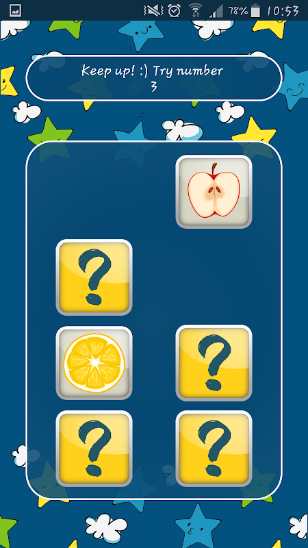 Memory game has 3 levels, easy, medium and hard. This game will help your kid and adult to develop better cognitive thinking. This memory game for kids will also improve persons: