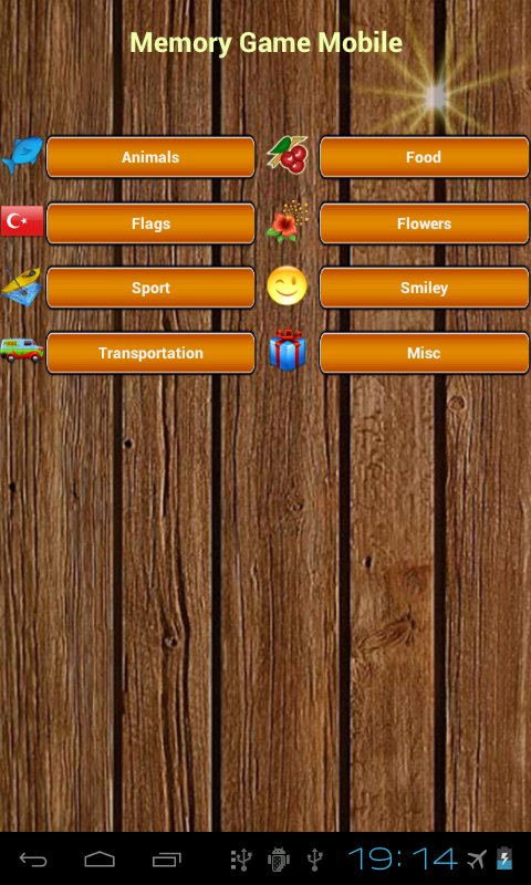 You'll love Animals, Food, Flag, Flower, Sport, Emotions, there are eight different categories, including transportation and others.