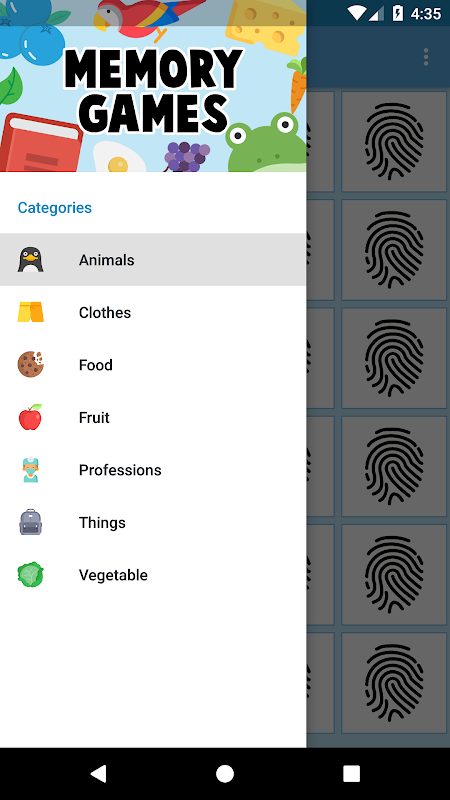 Memory games for kids contain many lovely images of animals, food, things, professions and others which makes them learn new things. Therefore it is very educational.