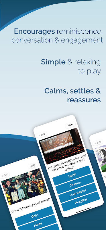 Our library of thousands of simple, frustration-free trivia games is professionally curated to create opportunities for reminiscence on topics such as music, food, history, pets and places. You may even find a game about your local area or town! Our games are not brain training nor are they designed to test. Our games gently spark nostalgia, happy memories and start wonderful conversations.