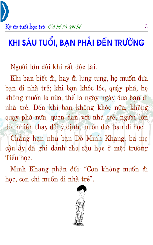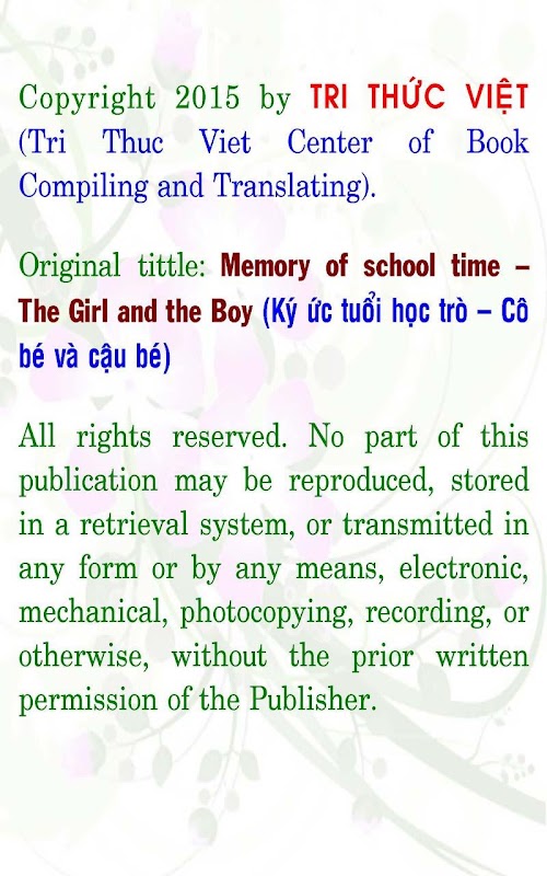 The book “Ký ức tuổi học trò – Cô bé và cậu bé (Memory of school time – The Girl and the Boy)” includes 190 pages which are compiled according to the purpose "Read Books anytime, anywhere". This is our breakthrough advance in the age of technology and it will help you a lot in learning language and reading conveniently.