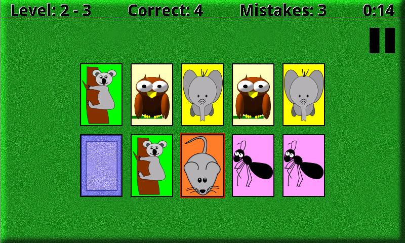 This game involves founding pairs of cards, and it has different levels of difficulty.