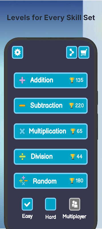 Time is ticking! Each question has a countdown timer, so you’ll need to think fast and stay focused. The faster you answer, the higher your score. In this fast math calculation app, It’s not just about getting it right—it’s about getting it right quickly!