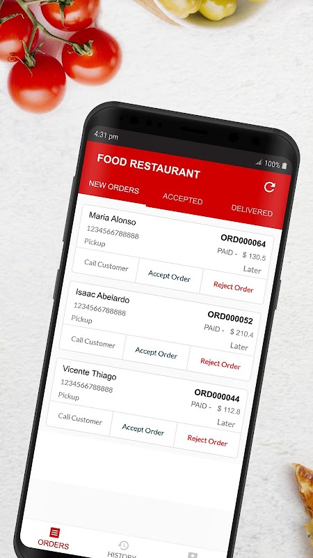 This app display order from menu2go app. and the user can change order status from received to preparing to ready