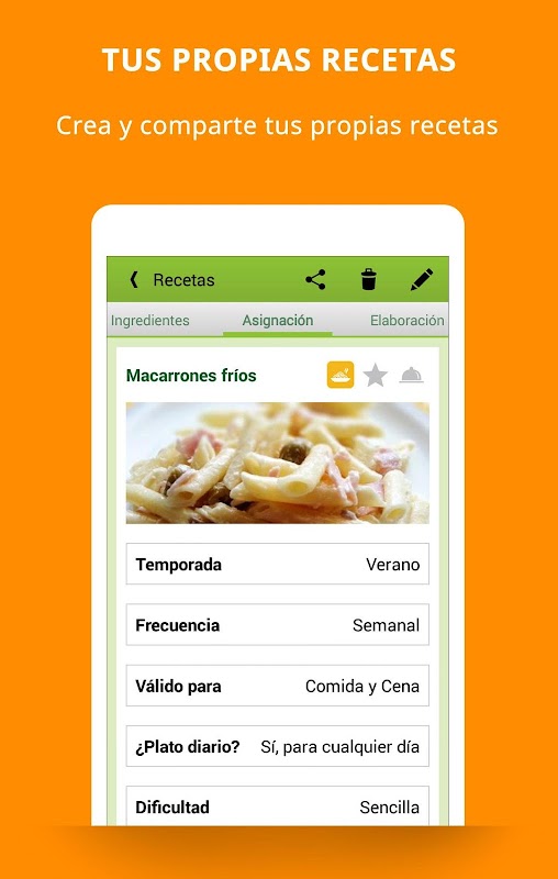 Puedes añadir tus propias recetas y así te las asignaremos más a menudo. Marca tus recetas favoritas y elimina las que no te gusten, así conseguirás un menú adaptado a los gustos de tu familia.