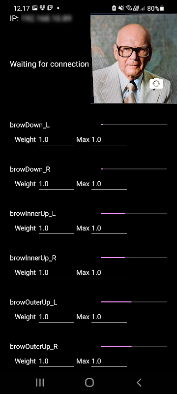 Supports at least VSeeFace, Luppet, VMagicMirror and FaceMocap2VMC PC-applications. The application talks with VTuber-applications through either iFacialMocap's or VTube Studio's protocol.