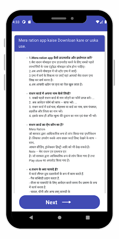 The application is developed as a public service to help Indian residents to find more information about Ration Card Guide. People use the app for personal information purposes only. The application is not affiliated with any government services or person.Guide purpose only.