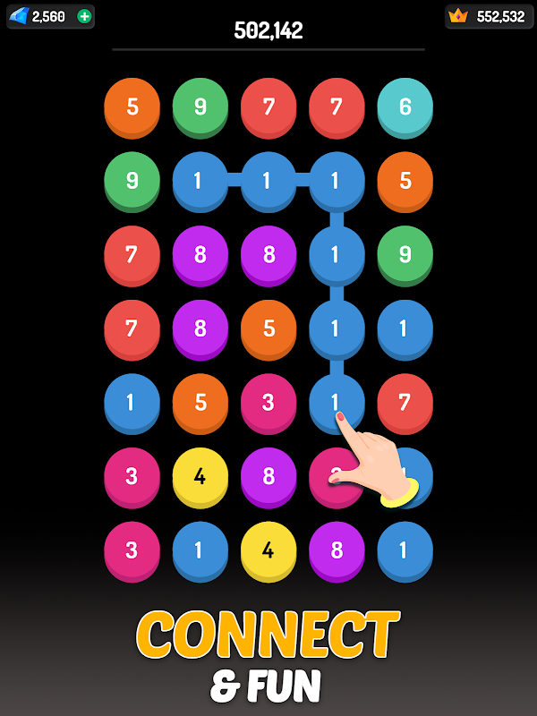• Slide to connect matching number Dots in any direction—up, down, left, right, or even diagonally.