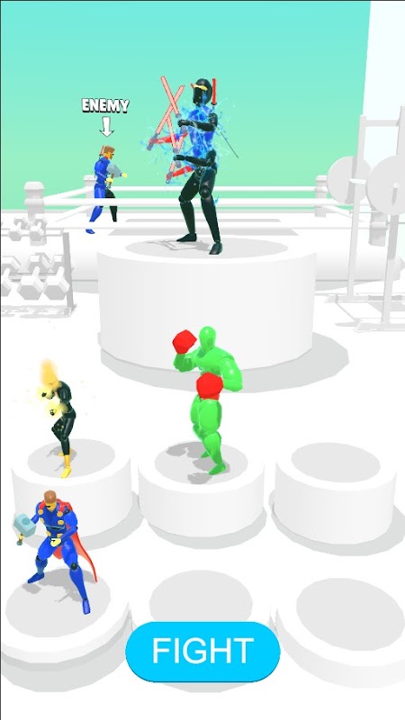 Merge multiple heroes to get one strong superhero and fight your enemies