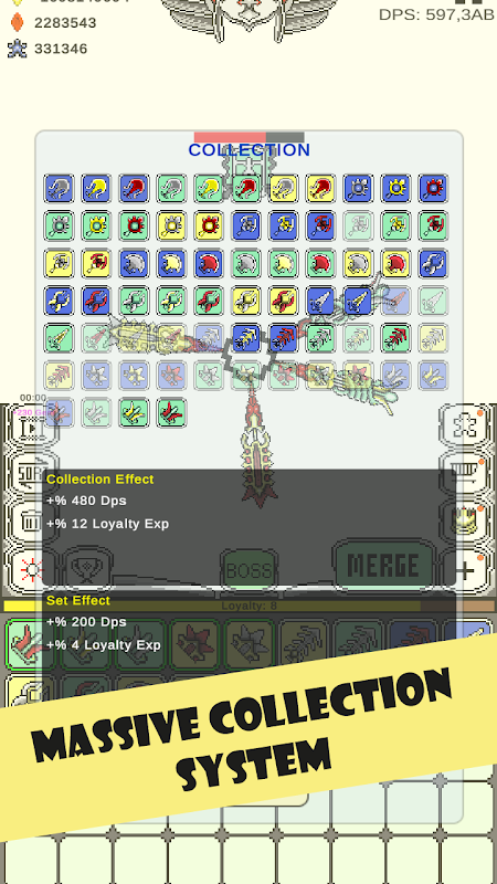 Regardless of the player's level, they can gain loyalty experience points after each chest is broken. These loyalty experience points allow players to increase their loyalty levels. Increasing loyalty levels help players defeat end-of-chapter bosses more easily. Additionally, players can also increase chest levels with the gems they earn. This allows players to merge more powerful swords immediately and gain more experience to progress faster.