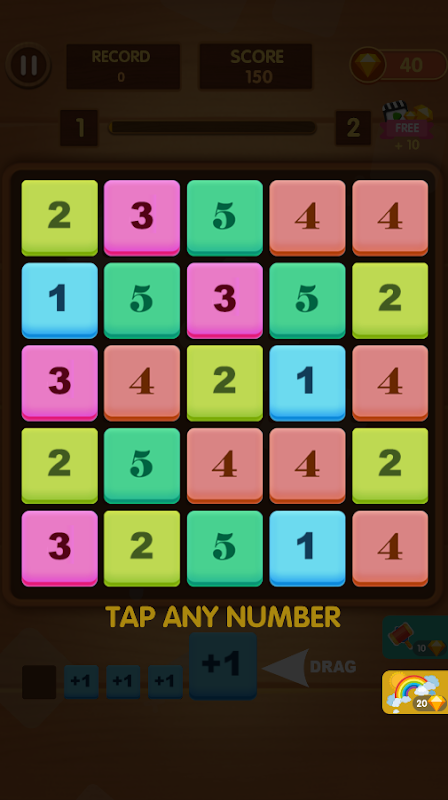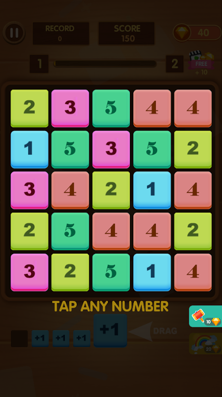 You have 5 number tiles in the start, Drag the right side number tile from the bottom tile bar area to any block on the grid. When the dragged tile meet the block on the board, numbers on the block will change to the sum of numbers on both blocks.