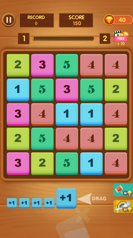 Drag number tile to the block on the grid, then, It will be merged into the sum of the two numbers. At least 3 same adjacent numbers will complete one merge.