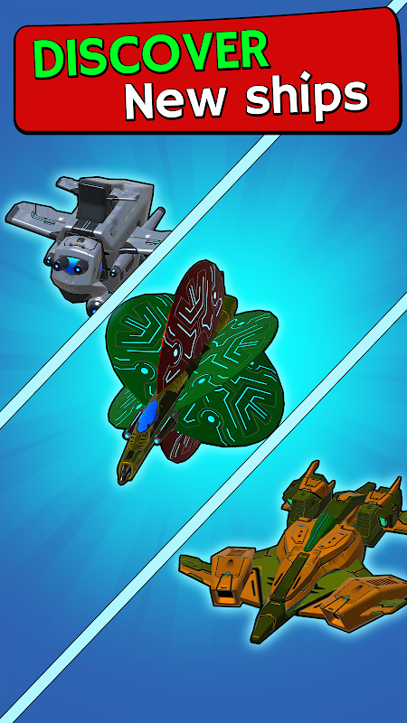🛸 Fight in epic idle simulator of space war! Each of your starship can participate in simulation of idle space battle to get the glory of victory over alien invaders. Upgrading your battle slots strengthen your plane space ship and increase your earnings! Each space ship that you will build has its own unique stunning visual in this tycoon simulator. Engage in the worldwide war simulator against alien invaders and observe vivid battles where your flotilla crushes enemies and earns you riches!