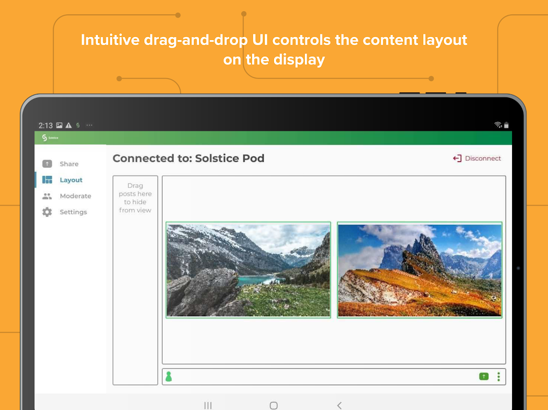 Stream media wirelessly from your device to a Solstice display.