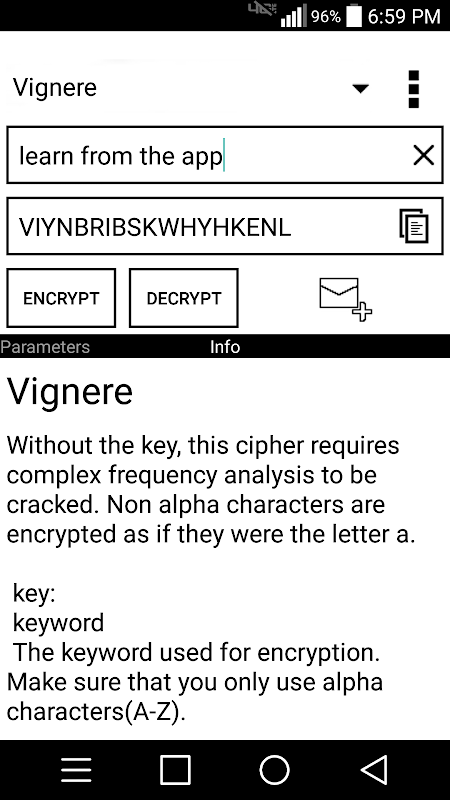 - Choose from 6 different ciphers