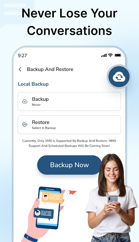 SMS Backup: Keep your texting history safe and restore it whenever you need.