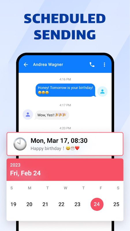 Never miss an important message again. Schedule messages to be sent at specific times. Delay sending messages or correct errors before delivery, ensuring effective and timely communication.